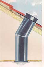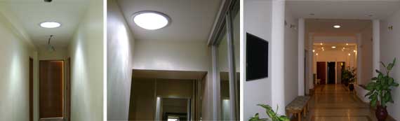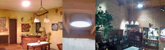 La luz penetra por un domo de vidrio colocado en el exterior del techo y es refractada estratégicamente hacia el interior a través de tubos y curvas espejadas, permitiendo una fluída circulación de la luminosidad. La luz circula por los tubos hasta llegar a un difusor de vidrio que distribuye la luz de forma pareja en el ambiente.